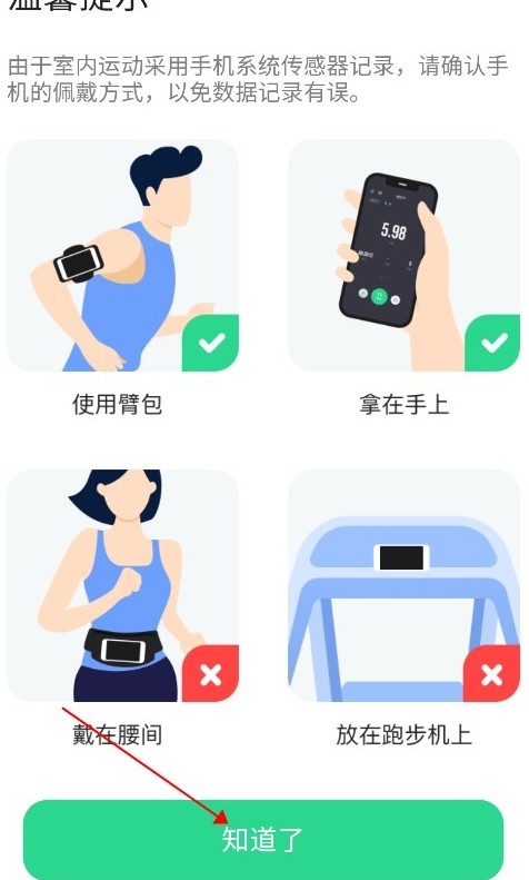 进入训练会有一个提示,我们需要正确携带手机,点击确认