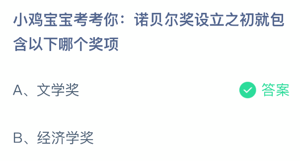 以上就是小鸡宝宝考考你:诺贝尔奖设立之初就包含以下哪个奖项,支付宝蚂蚁庄园2025年11月9日答案最新,更多精彩内容,请点击关注3DM手游网更新!