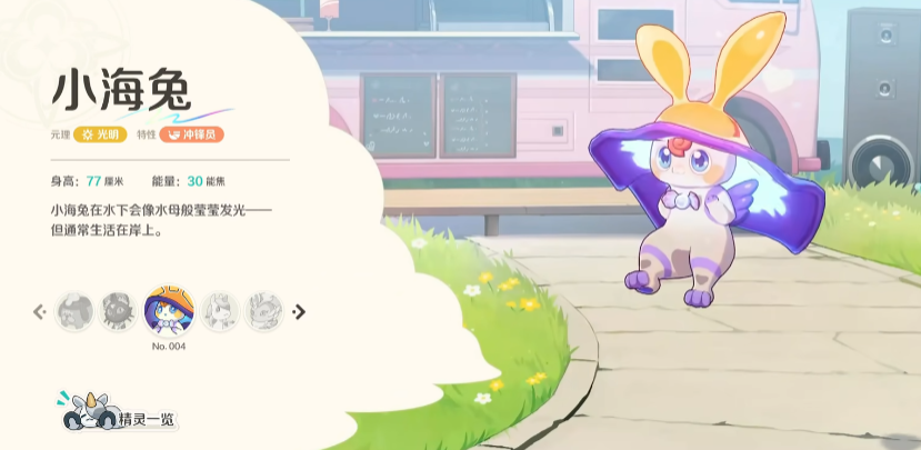 游戏中的小海兔是一个可以适用于很多场景的精灵,在精灵的描写上面,它虽然在水下也会发光,但是通常这个精灵是生活在岸上的,所以很多玩家认为,小海兔它是后期能够在不同场景作战当中带来不同特效效果的,目前它作为一个冲锋员定位的特性其实也属于是他的主要战斗效果,目前大家玩儿小海兔的话,最好是放在前排用它,因为它是放在突击定位上比较好用的一个精灵,小海兔它在本身的数值上面,最好的是生命值和近战输出能力都有不错的优势。