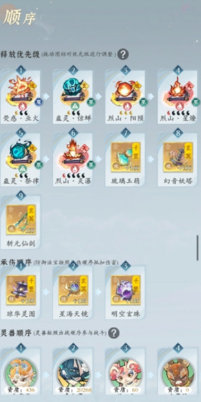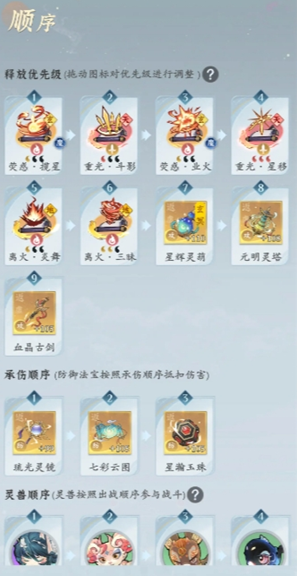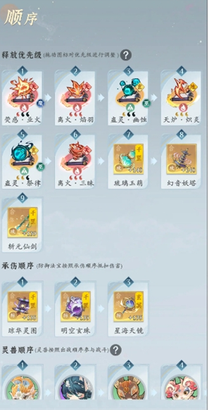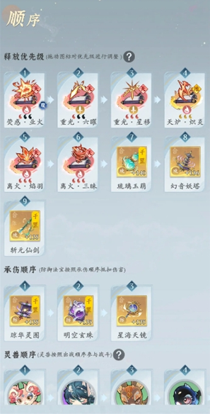 神通:揽星-六耀-星移-业火-炎舞-三味(焰羽没到天阶用揽星,天阶以后揽星不带了,焰羽天阶放5号位,炎舞放1号位)