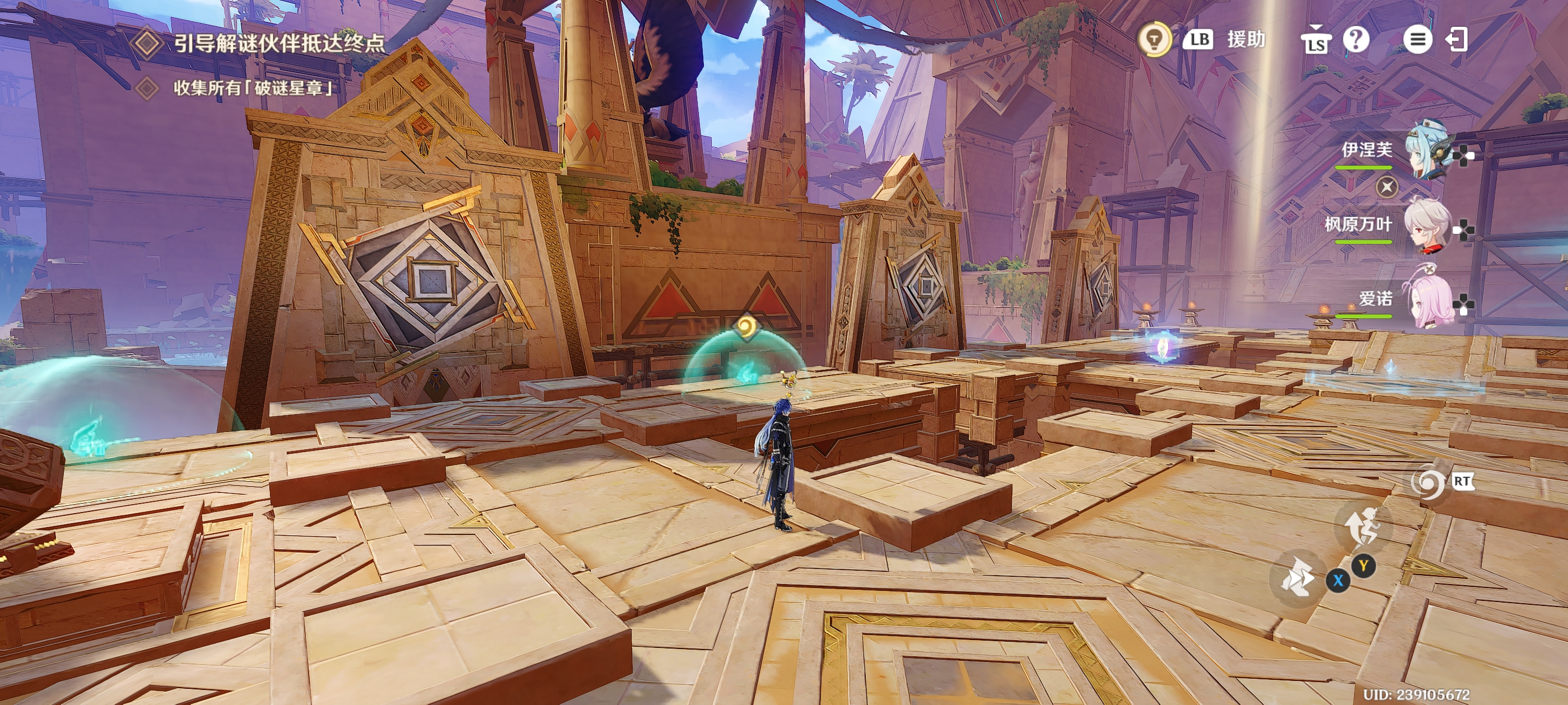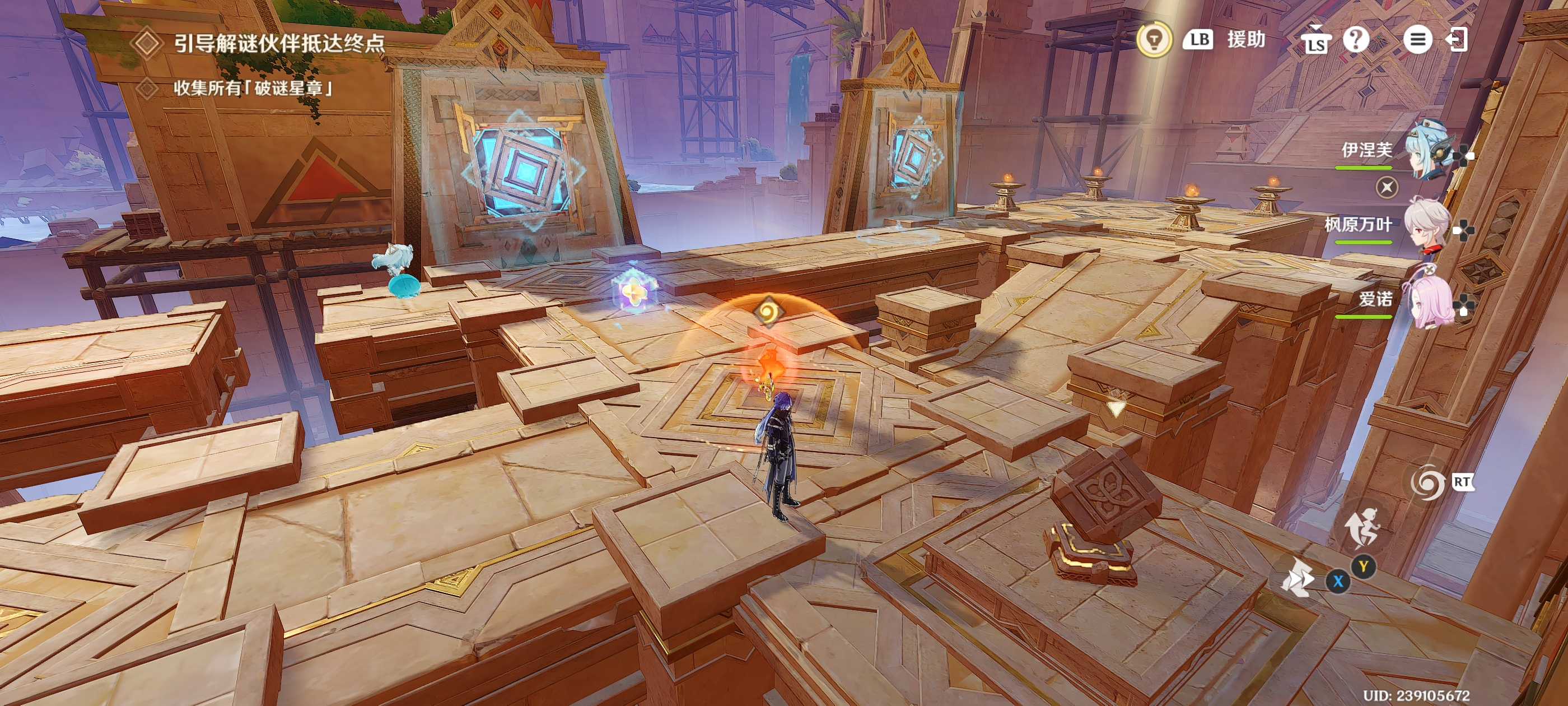 开始挑战后,移动到机关附近,将[升腾奇效]拾取并放置在一旁最近的基座上;