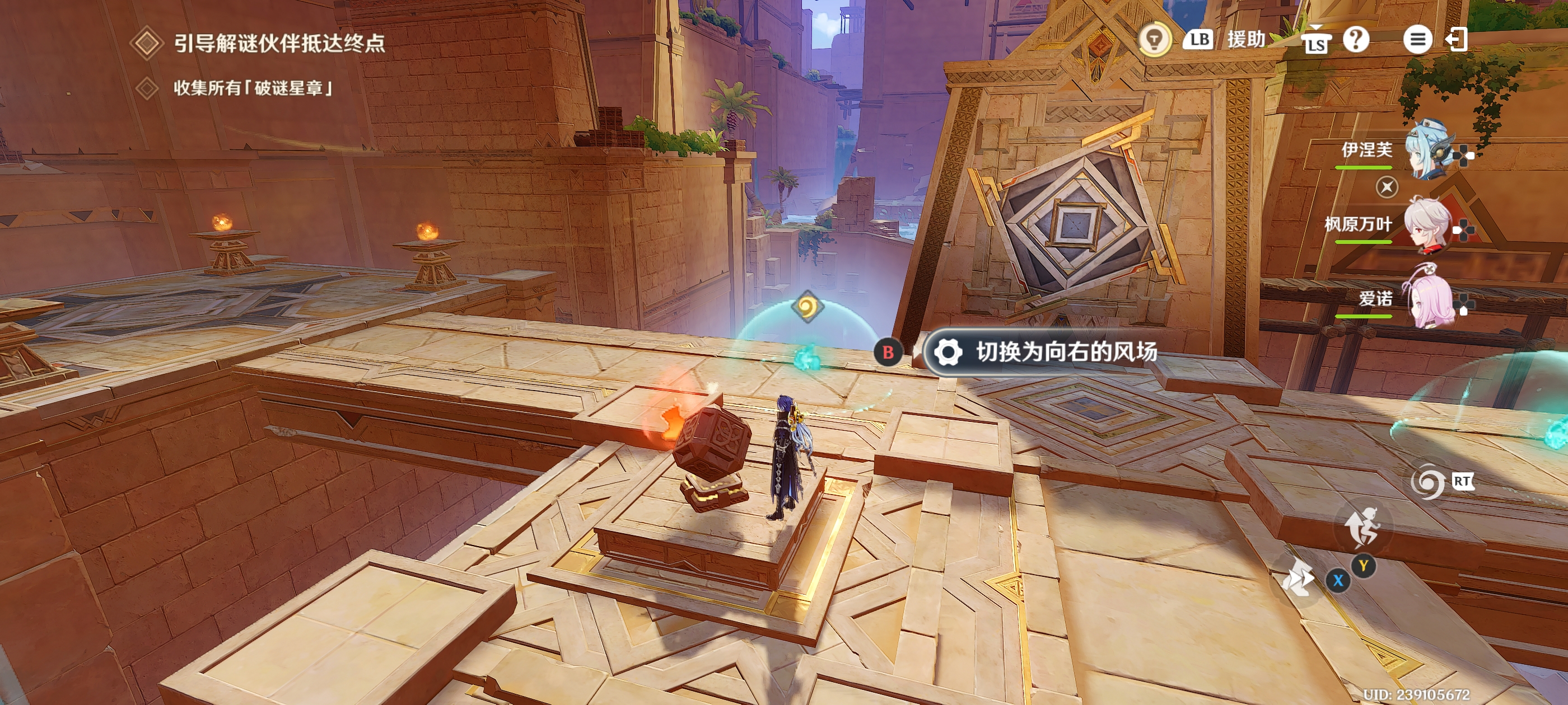 施放战技后将[磐固奇效]拾取后放置在基座上,当解谜伙伴经过后将使自身变得安如磐石,且不受风的阻力影响