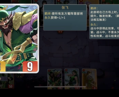 今天就用蜀国阵容举例说明,比较直观的,那就是卡牌颜色的变化,主要是以黑色还有绿色为主。核心的玩法是围绕羁绊,搭配后勤效果之后,马上就会形成一个完整的体系。所谓的羁绊就是要把足够数量的蜀国将牌凑齐,就可以激发特殊技能,获得额外的属性加成。让整个队伍的战斗力也能有效迅速的实现飞跃。在选择卡牌时构建蜀国阵容是关键,开局时尽可能挑选蜀国将牌,不要去追求高星级的卡牌。先将凑齐基础羁绊作为核心,一开始可以使用2~3个蜀国低星级的将领。
