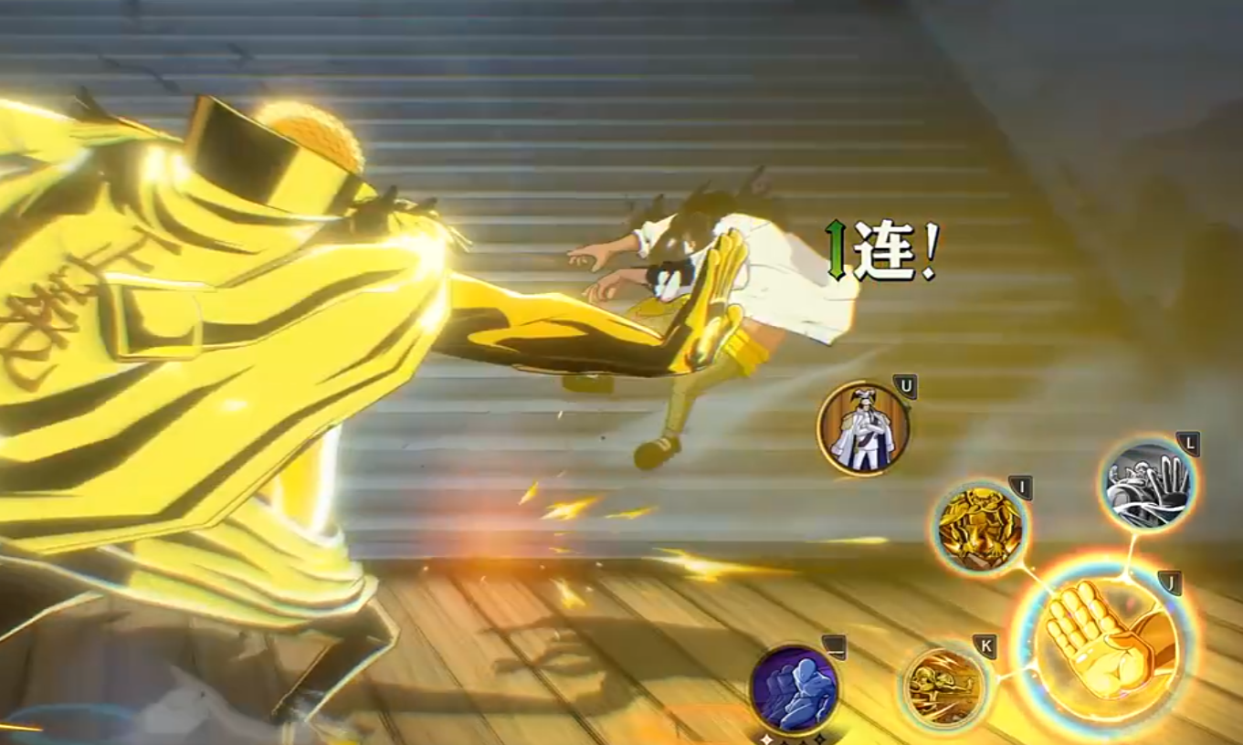 在普通状态下,战国的普攻共五段。前两段为连续出拳,速度快、衔接流畅;第三段向前突进撞击,具备击飞效果;第四段使用左手下勾拳提升连招稳定性;第五段以飞踢收尾完成连段。长按普攻可进入连打模式,期间每次攻击都会附加拳风特效,增强打击范围与视觉反馈。