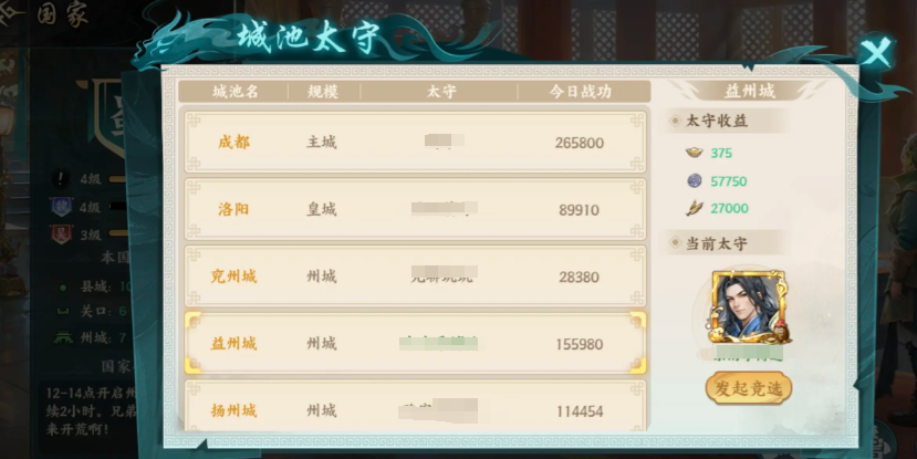 高阶官职就可以获取直接的福利,并且还可以解锁叠加的奖励。每周战功排名前几名,除了天下以及赫赫专属的称号之外,还可以获得召唤令,直接用来去抽取稀有的武将。国库每相隔4天就会有一次元宝分红,官职越高战功越高,那分红的比例也就越高。对于那些顶尖玩家来说,就可以拿到6%的分成,一次性分红,起码可以收获上万的元宝。太守职位就等同于是福利的天花板,例如规模比较大的洛阳皇城,还有益州城都会拥有着丰厚的收获。