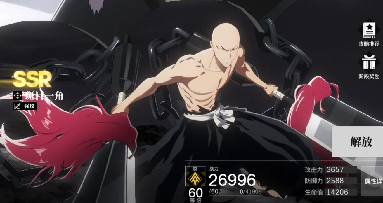 卍解黑崎一护是游戏当中的单体爆发T0角色,在boss战斗期间,可以使用卍解技能,对敌方施加压力,虽然aoe能力不足,带其单体作战方面,就算是前期,也有极强的发挥。