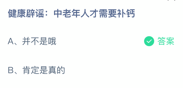 以上就是健康辟谣:中老年人才需要补钙,支付宝蚂蚁庄园2025年11月19日答案最新,更多精彩内容,请点击关注3DM手游网更新!