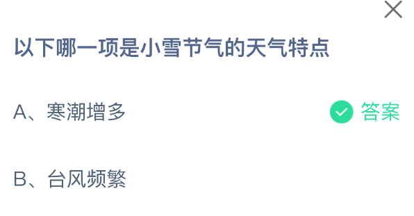 以上就是以下哪一项是小雪节气的天气特点,支付宝蚂蚁庄园2025年11月22日答案最新,更多精彩内容,请点击关注3DM手游网更新!