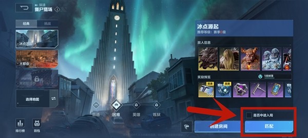玩家点击右下角的匹配即可,中途加入对局的意思是,若不框选,则匹配的对局是从初始点出发的,若框选,匹配的对局则是从跑图中途进入的,玩家可以根据自身喜好选择是否框选。