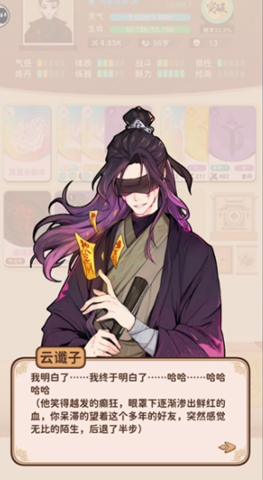 在《卡包修仙》中,紫衫人云谶子的剧情线包含真结局与魔道结局两条路径,对应多项隐藏成就。达成真结局可解锁传承《真·鬼谷八卦》及成就【鬼谷真传(真)】;通过特定操作使道友死于死劫或令云谶子入魔,则可完成【魔道圣人】、【云谶子的死劫】及【入魔的云谶子】等成就。下文将详解各路线关键选项与操作要点。