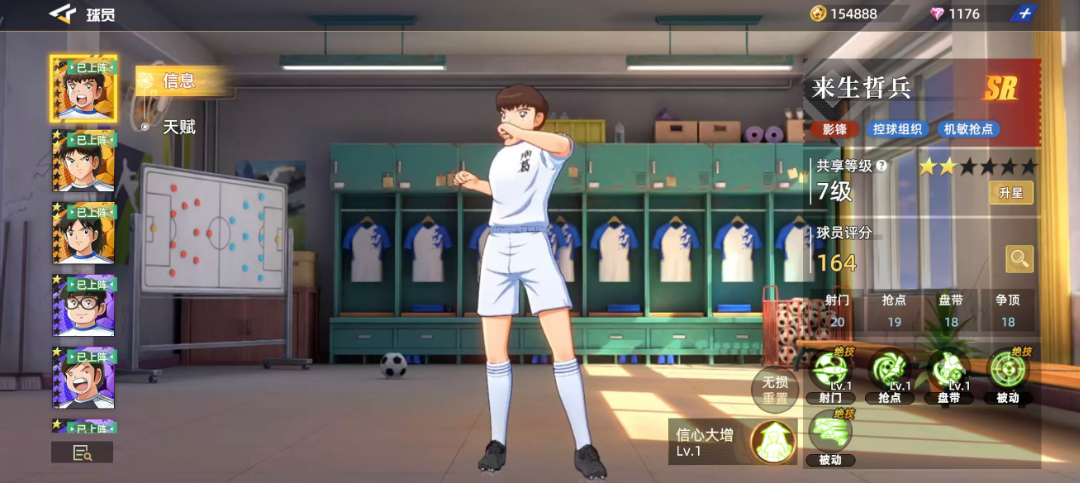 游戏当中来生哲兵是SR品质角色当中非常少见的一个定位球员,他一般是放在影锋这个位置上面用的,作为控球组织当中比较有能力的球员,后期实战里面其实用他的各种机敏动作进行抢点也是可以的,那么目前根据来生哲兵这样的定位来看各方面属性的话,在其中主要用到的就是射门20、抢点19、盘带18、争顶18这几个属性,通过评分数值来看其实整体的均衡性还可以,而球员的总体评分也有164,所以这样的评分就说明他不仅是一个有自身特性的球员,也是有不错上升潜力的一位球员,但是在整体属性六维图当中,大家可以看出他的弱点就是抢球,因为只有15的分值,所以在上面可以用来生哲兵来抢点,但是抢球的话还是用其他的球员会更合适一些。