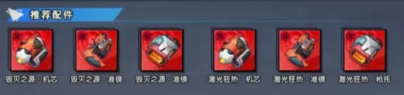 推荐搭配:竞技套:过载头盔,过载背包,辉星衣服,辉星护手,辉星心核,辉星鞋子(竞技活动里遇到人前,开大消耗能量,叠辉星四件套的buff,遇人远距离两炮直接秒)