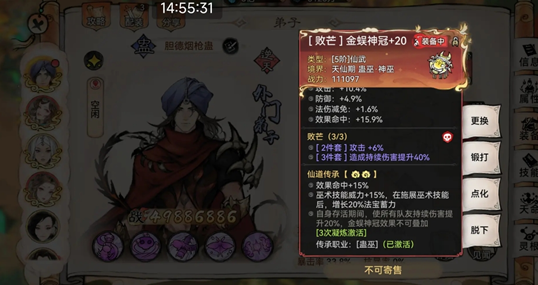 杠精祛毒蛊:转职仙蛊解锁2000年巫术cd-1,穿涌雷套,基础20%蓄力,加上词缀和天命效果,拥有35%基础蓄力,本命需求,主木系技能带木鳞。