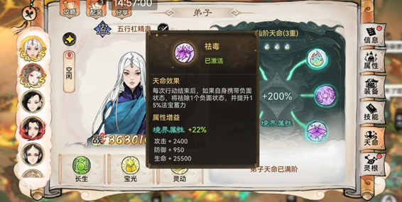 二、百花释放获得400点蓄力,其中基础蓄力为700*0.35=245,400+245=645,天命仙三灵动为60点,刚好对应鳞的700蓄力点。优点是脱离蓄力依赖,万一死了,节奏就断了,百花属于治疗,优先级很高,基本上一动一法宝不成问题。