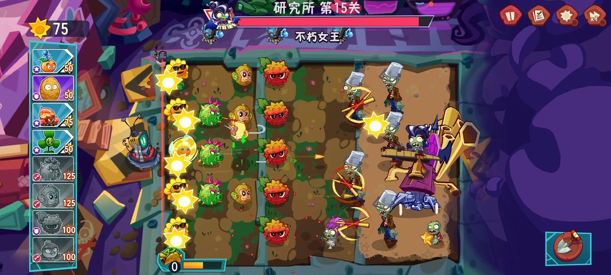游戏中想要收集到黄金星星只需要打败抱着星星走的僵尸就行,如下图所示,在右下角我们可以看到一个僵尸抱着星星在向前走,我们只需要击败这个僵尸就能获得黄金星星。