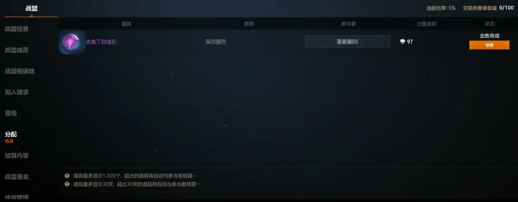 在选择开启分配模式的情况下,战盟成员击杀BOSS后掉落的物品会由【战盟管理】统一操作,除了可以将掉落物分配给同盟内的指定成员,管理还可以将道具挂在交易行出售!出售所获的流通钻石,同样可以分配给同盟内的全体成员或是指定成员。