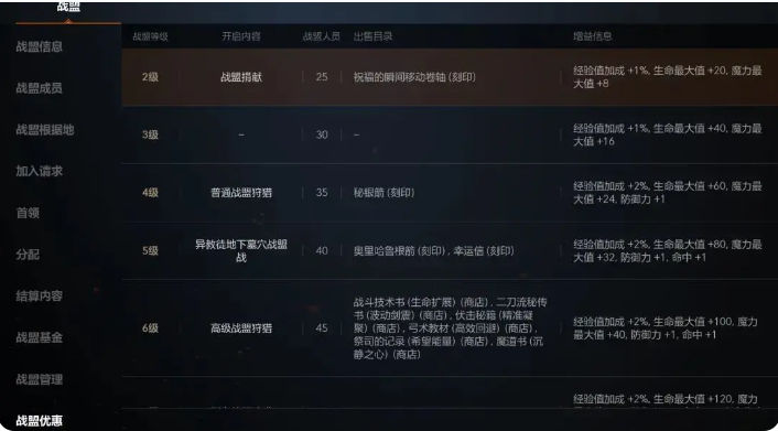 提升战盟等级后,所有的战盟成员会获得额外的属性加成!而且战盟等级越高,加成属性越高。