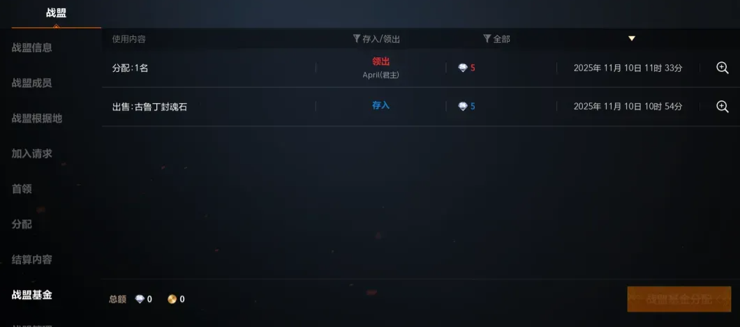 “战盟基金”依然由管理选择人员进行分配,管理可以将这一部分的钻石作为奖励,奖励给战盟做出突出贡献的成员!所有战盟基金分配所对应的操作人员都可查看,确保相对的公平公正!
