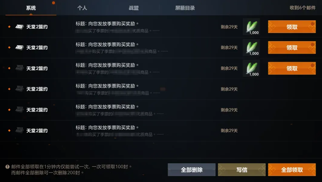 同盟成员购买季票后,盟内的其他玩家也能收到奖励道具“殷海萨恩宠”~使用该道具刷怪可以获得成倍的经验以及金币!
