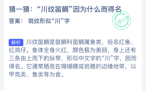 以上就是猜一猜:“川纹笛鲷”因为什么而得名?神奇海洋今天答案最新2025年11月27日分享,更多相关攻略内容,请点击关注3DM手游网更新!