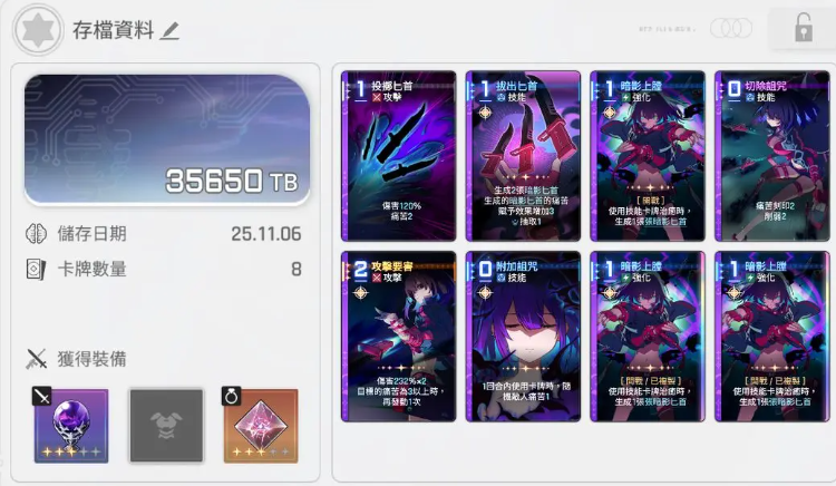 新手就建议大家进行搭配的就是一个奶刀队的效果,其中主要的核心角色可以用德蕾莎搭配米卡,再加雷伊这样的整体搭配,可以带来足够稳定启动的一个优势,而且前期也不是很吃费度,这里对于四星角色的要求来说,他们的存档也是比较低的,所以整体用来进行输出的话大家也不用担心,但是这个阵容相对来说它的缺点就是没有群体的效果,因为其中的核心主要是围绕德雷莎这张卡的,主要带来的灵光一闪进行构筑的话,其实暗影上膛这张卡主要进行强化的话,带来的技能卡牌还是不错的,这里利用闪的话,使用技能可以进行卡奶的操作,那么此时就可以给一张0费度的飞刀卡牌,进行叠加的话整体进行开局给出的3张能力都是不错的。