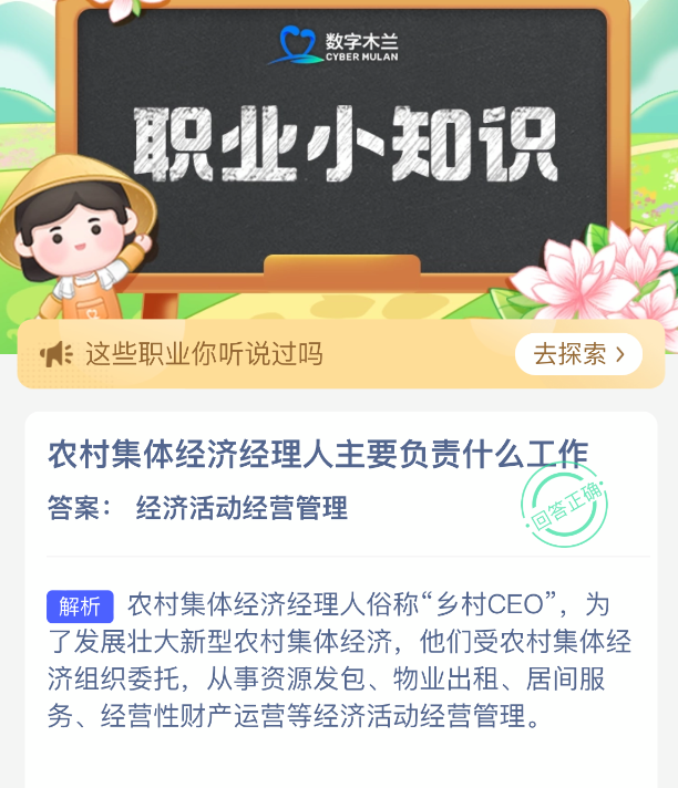 以上就是农村集体经济经理人主要负责什么工作?支付宝蚂蚁新村最新答案2025年12月1日,更多精彩内容,请点击关注3DM手游网更新!