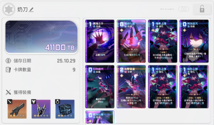 这里如果出的神卡是减费也是非常不错的,作战当中一定要选择第一个,因为只有第一个才给奶量,给大家匕首水之根源不要选择消灭就行,复制只要是0费的奶其实都可以复制,雷伊的话则删掉暗黑之刃和黑暗斩击,优先选择虚无卡牌的伤害量加40%,如果想和其他卡组也通用的话,也可以选择费用为1以下的卡牌,伤害量加40%核心技能点心时间,只要复制这张卡就行,越多越好,暗黑就选择一回合之内虚无攻击卡牌的伤害量加50%的效果,要想通用到其他卡组的话,选择这个选择一张攻击卡牌,在使用前伤害加100%好了。
