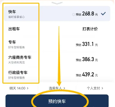 4、最后只需选择用车的类型,并点击【预约】按钮即可完成。