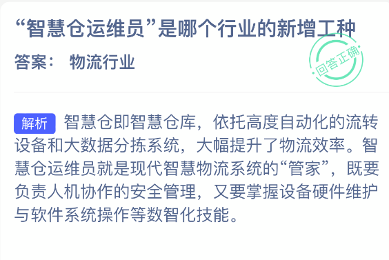 以上就是“智慧仓运维员”是哪个行业的新增工种?支付宝蚂蚁新村最新答案2025年12月3日,更多精彩内容,请点击关注3DM手游网更新!