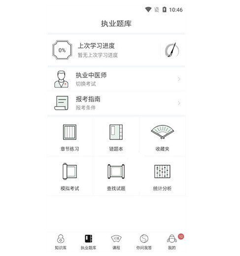 1、打开中医通APP,在主界面中找到并点击【执业题库】图标,进入题库功能页面。