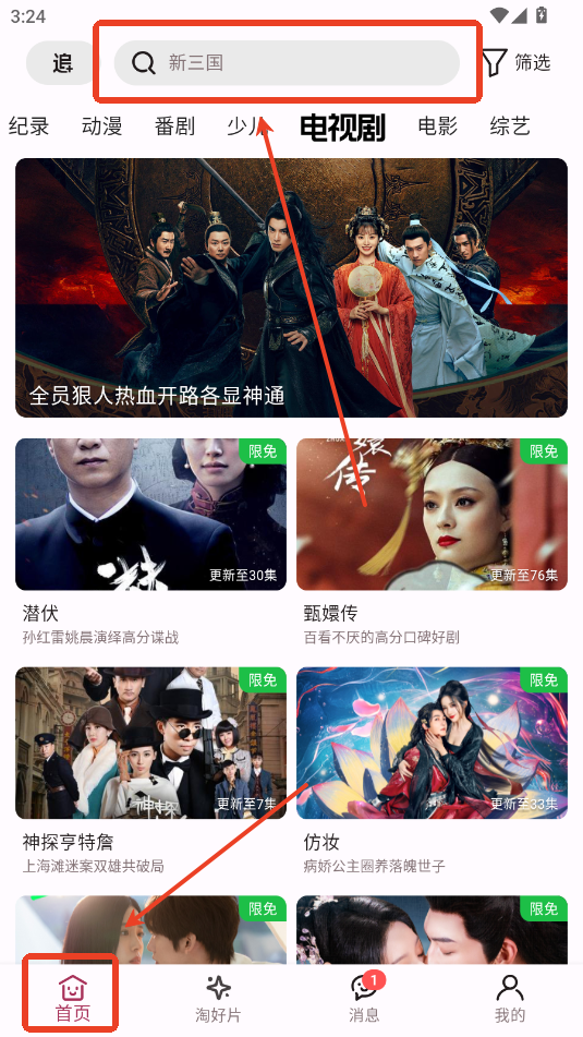 A次元app怎么搜索视频,用户在本站下载安装好软件,点击手机桌面图标,打开app,在首页点击上方搜索框,输入你要搜索的影视剧名称,即可完成搜索操作。