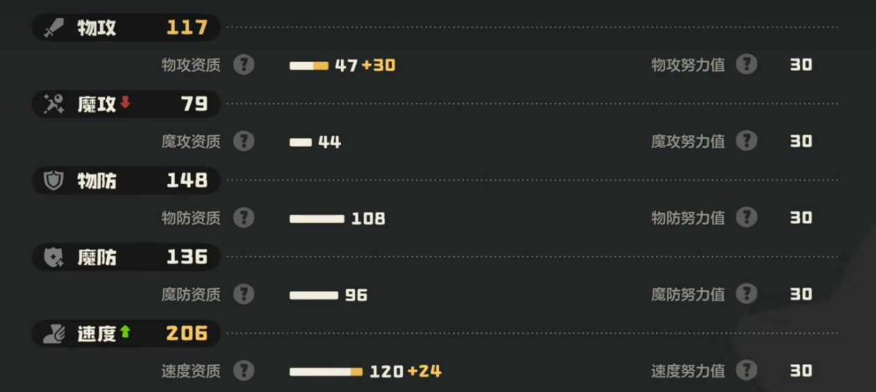 种族值方面咔咔鸟的双攻确实不算高,但是耐久很不错。生命值150,防御108,魔抗96,这样的三围数值让它能扛住不少伤害。速度种族也很快,这点对于咔咔鸟来说相当重要。毕竟它需要先手才能触发连击加成,速度慢了就发挥不出应有的实力。努力值的加点推荐往生命、防御、速度这三项加,这样能最大程度提升生存能力。加满之后生命值能到374左右,防御能力也会明显提升。