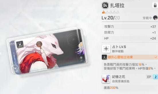那么在其中核心的搭配用德蕾莎+米卡+蕾伊之后,大家在局外伙伴上面也可以考虑对应效果比较强势的,这里给德蕾莎可以搭配扎塔拉这个伙伴,也叫做狐娘,这个伙伴在对局当中提供了一定的增伤效果之后还有护盾牌来挡伤害,后期也可以快速过其他的卡,而为米卡搭配的则是修女伊冯娜,这个伙伴带来的就是米卡比较需要的防御数值,而且在治疗效果以及防御数值上面比较需要的时候,大家可以注意上面两者之间挂钩的其实还是稳定住每一个回合当中大家的血量数值,包括这里利用这个伙伴的效果也可以带来30%血量上限提升的一个能力,所以放在这里跟米卡搭配这个伙伴之后就可以保证,米卡自身的能量资源都不浪费。