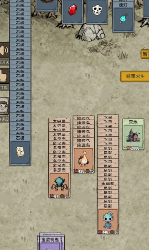 游戏主要通过堆叠卡牌进行行动,主要人物为【生存者】,在【诡矿】获得【诡币】,使用诡币在【野外】兑换资源,获得【祭坛】。