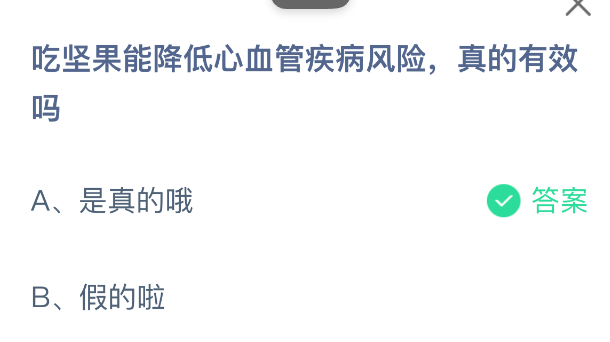 以上就是吃坚果能降低心血管疾病风险,真的有效吗,支付宝蚂蚁庄园2025年12月12日答案最新,更多精彩内容,请点击关注3DM手游网更新!