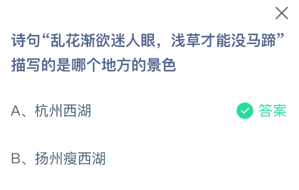 以上就是诗句“乱花渐欲迷人眼,浅草才能没马蹄”描写的是哪个地方的景色,支付宝蚂蚁庄园2025年12月13日答案最新,更多精彩内容,请点击关注3DM手游网更新!