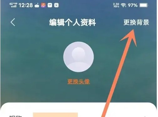 进入编辑个人资料页,点击“更换背景”选项。