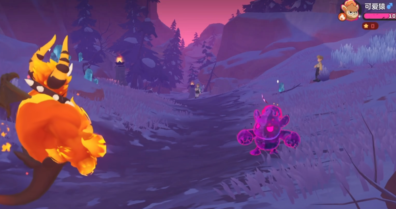 想要获得可爱猿的话,大家可以多去野外溜达,要是大晚上的发现这只猿的话,那就可以开始自己的进攻啦!首先这只可爱猿通体是紫色的,并带有一点透明状,这时看到后就直接上去一顿攻击就好。不过要是玩家的等级比较高,并且有更高级的精灵球,那就直接投掷就行,同样可以获取!