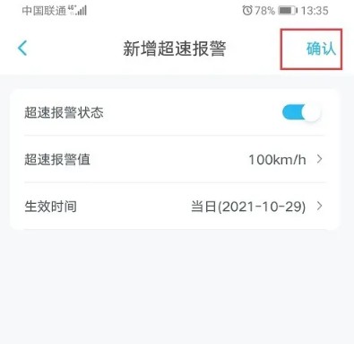 第五步点击确认之后,就成功设置超速报警了,根据需要设置