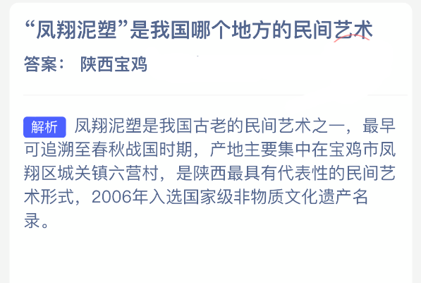 以上就是“凤翔泥塑”是我国哪个地方的民间艺术?支付宝蚂蚁新村最新答案2025年12月19日,更多精彩内容,请点击关注3DM手游网更新!