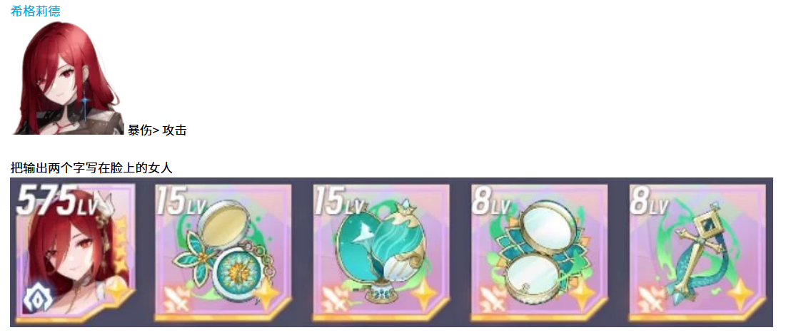 希格莉德这个角色的定位非常明确,就是纯输出。她的技能机制决定了必须往伤害方向去堆,所以装备首选暴击伤害,其次才考虑攻击力。有些玩家喜欢平衡一下各项属性,但对希格莉德来说真没必要,把伤害拉到极限才是王道。毕竟她上场就是为了秒人的,伤害不够高的话根本发挥不出应有的作用。