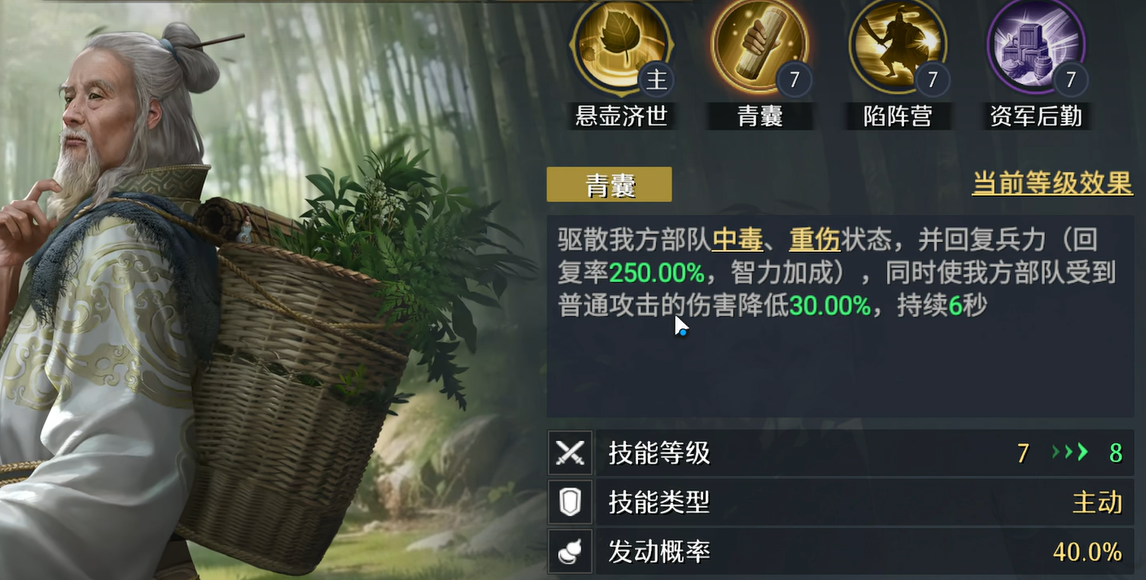 左慈与张角之间存在明确的技能响应链:当二者同时在场时,可激活专属场景效果“狂风暴雨”,触发高额二段伤害。这一机制大幅缓解了群雄前期清图乏力的问题。而华佗则承担队伍唯一的治疗职能,其基础治疗量充足,配合盾兵高减伤特性,使整支队伍具备较强的容错空间和续航韧性。