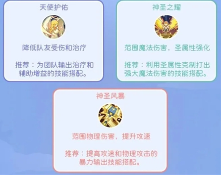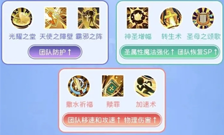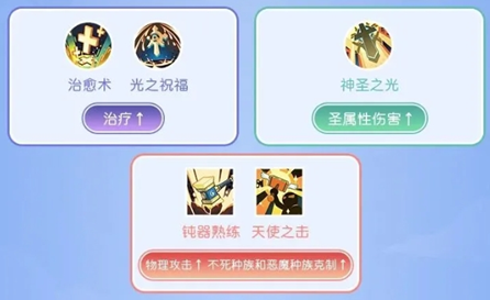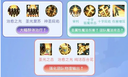 1、服事阶段,天使之赐福、幸运之颂歌、天使之光是比较通用的技能!