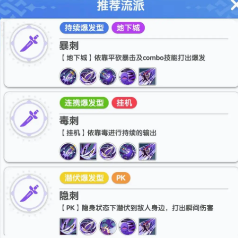 盗贼有三个流派玩法,暴刺,毒刺,隐刺