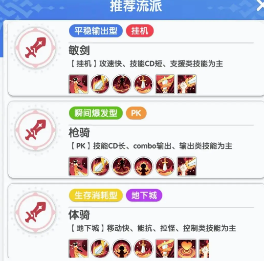 剑士,分为三个流派,敏骑,枪骑,体骑
