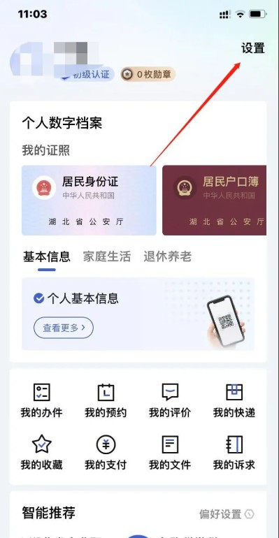 首先手机打开鄂汇办app,登录个人账户后点击【设置】