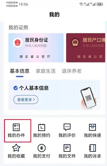 第二步进去鄂汇办我的界面之后,点击我的办件