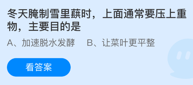 以上就是冬天腌制雪里蕻时,上面通常要压上重物,主要目的是,支付宝蚂蚁庄园2025年12月30日答案最新,更多精彩内容,请点击关注3DM手游网更新!