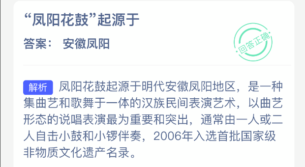 以上就是“凤阳花鼓”起源于?支付宝蚂蚁新村最新答案2025年12月29日,更多精彩内容,请点击关注3DM手游网更新!