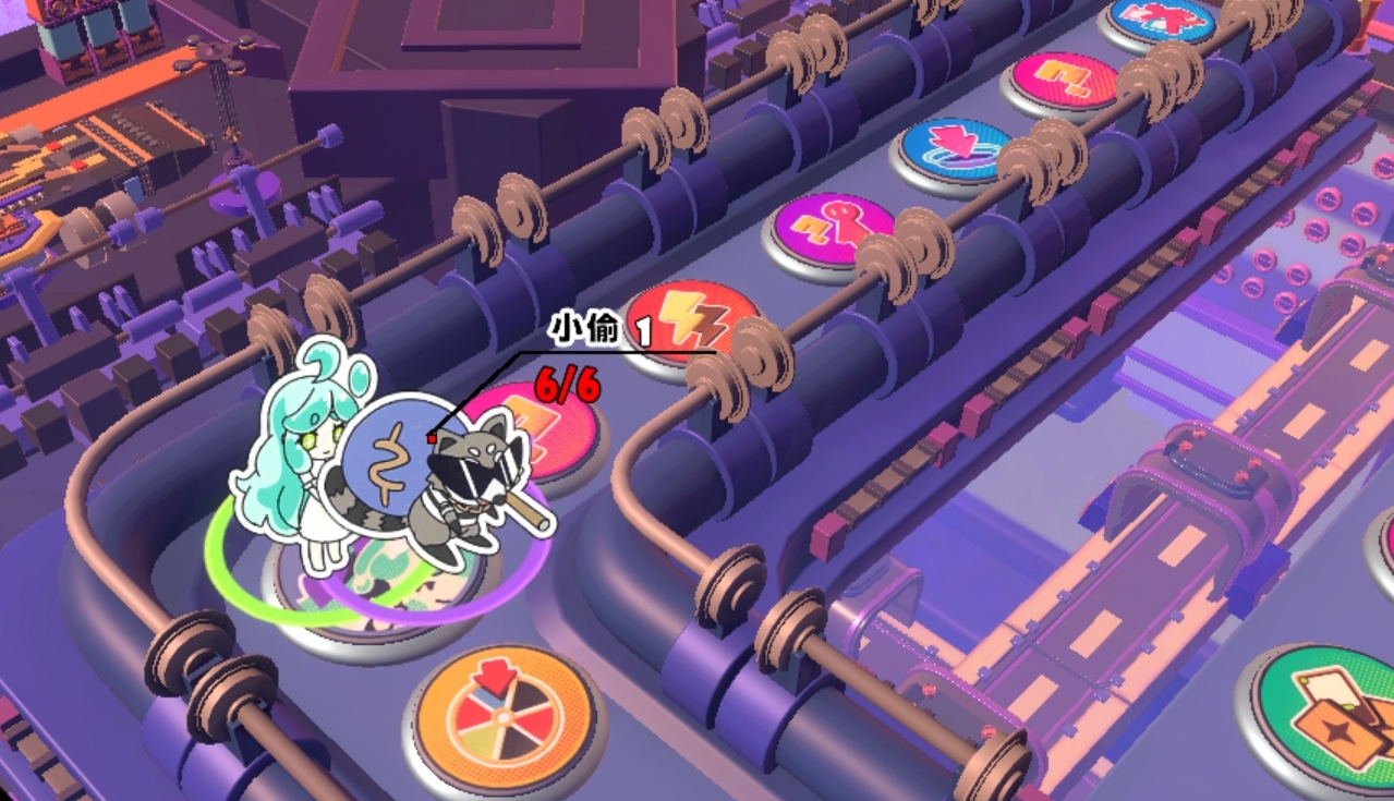 从游戏的第一回合开始,魅影都市这张图就会在地图里出现小偷,它有单独的行动回合,血量为6点,不会主动攻击玩家,但能被玩家拉入战斗,若移动时它经过了玩家,则会偷取该玩家身上的星币,每次最多能投4枚,不同玩家单独计数,因此若玩家们都集中它的行动路线上,那么它一次行动最高能窃取到16枚星币。此外,小偷自身也会携带5枚星币,且它所偷到的星币会一直存在身上,并在它被击倒时,转移给击倒它的玩家,这一设定也令此图玩起来极其刺激,即便自己星币积累量落后他人,也有概率能通过击倒小偷来完成翻盘。